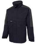 100% Polyester Oxford 450 D,370gsm shepherd fleece lining,Two internal chest pockets and internal mobile phone pocket,Two front welt pockets with zipper,Concealed hood, and two waist pockets with Velcro closure,Embroidery zipper,Seam sealed for improved durability,Waterproof rating to 8000mm fabric,